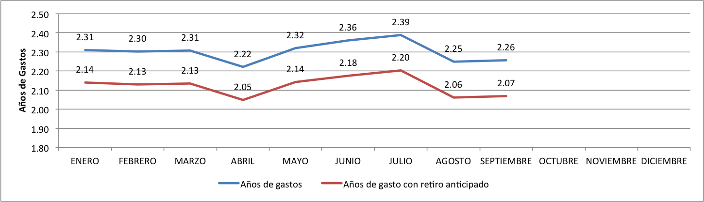 Septiembre arroja un resultado negativo y nos indica que tuvimos que aportar (pagar) un 24% adicional a los ingresos corrientes del mes. Es decir, tomamos $24 pesos adicionales por cada $100 pesos de ingreso que tuvimos para poder cubrir nuestro gasto.