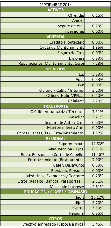 El mes de Septiembre fue bastante familiar pues junto con toda la familia visitamos la playa y anduvimos unos días por la Isla del Padre. Aunque estuvo lloviendo la pasamos muy bien. Obviamente eso acarrea gastos no planeados y por lo tanto nuestro balance final del mes se vió comprometido.