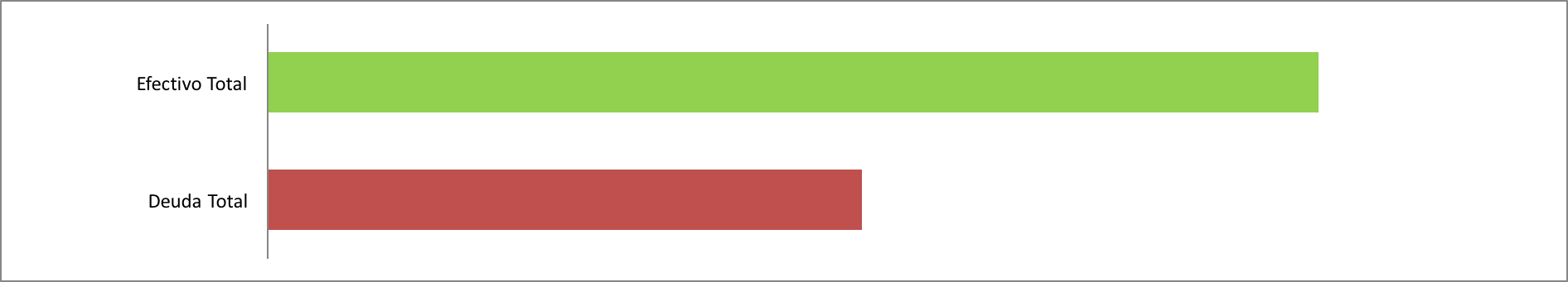 La gráfica que muestro a continuación, calcula el efectivo total que tengo en ahorro e inversiones de corto y mediano plazo, contra mi deuda total incluyendo créditos al consumo. OJO! Aquí no incluyo lo que tengo acumulado en mi AFORE ni en otro vehículo de inversión a largo plazo.