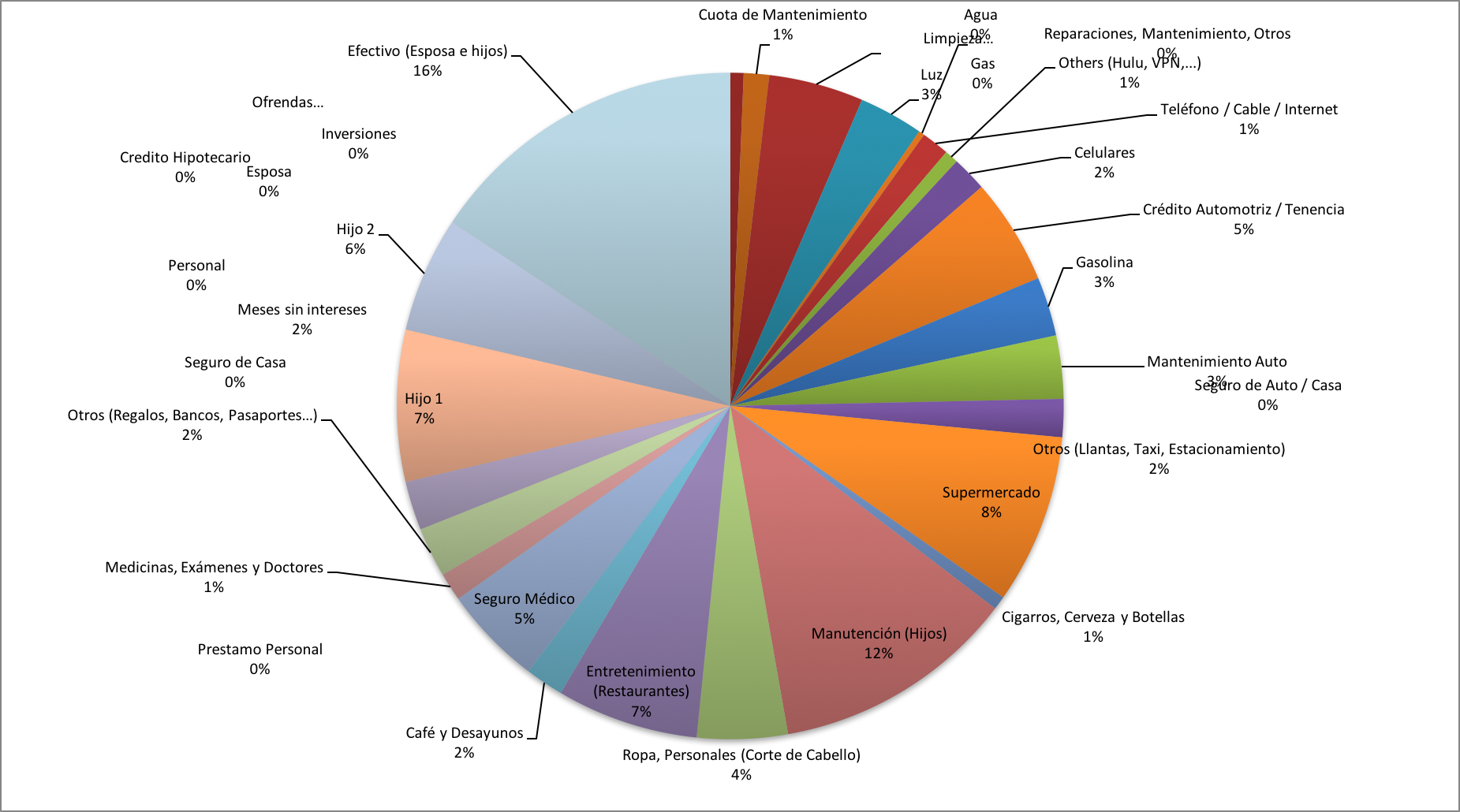 …ya sabes que yo soy más gráfico, por eso te comparto la misma tabla pero en gráfica. Podrás ver que hicimos un mal trabajo registrando el efectivo que le entregué a mi esposa para poder hacer los gastos correspondientes a la casa y a los hijos. Por lo tanto, todo se ha quedado registrado en el rubro de “Efectivo (Esposa e hijos)”.