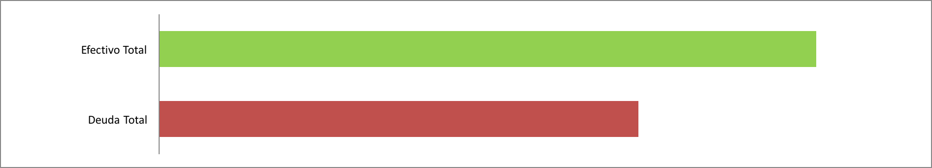 La gráfica que muestro a continuación, calcula el efectivo total que tengo en ahorro e inversiones de corto y mediano plazo, contra mi deuda total incluyendo créditos al consumo. OJO! Aquí no incluyo lo que tengo acumulado en mi AFORE ni en otro vehículo de inversión a largo plazo.